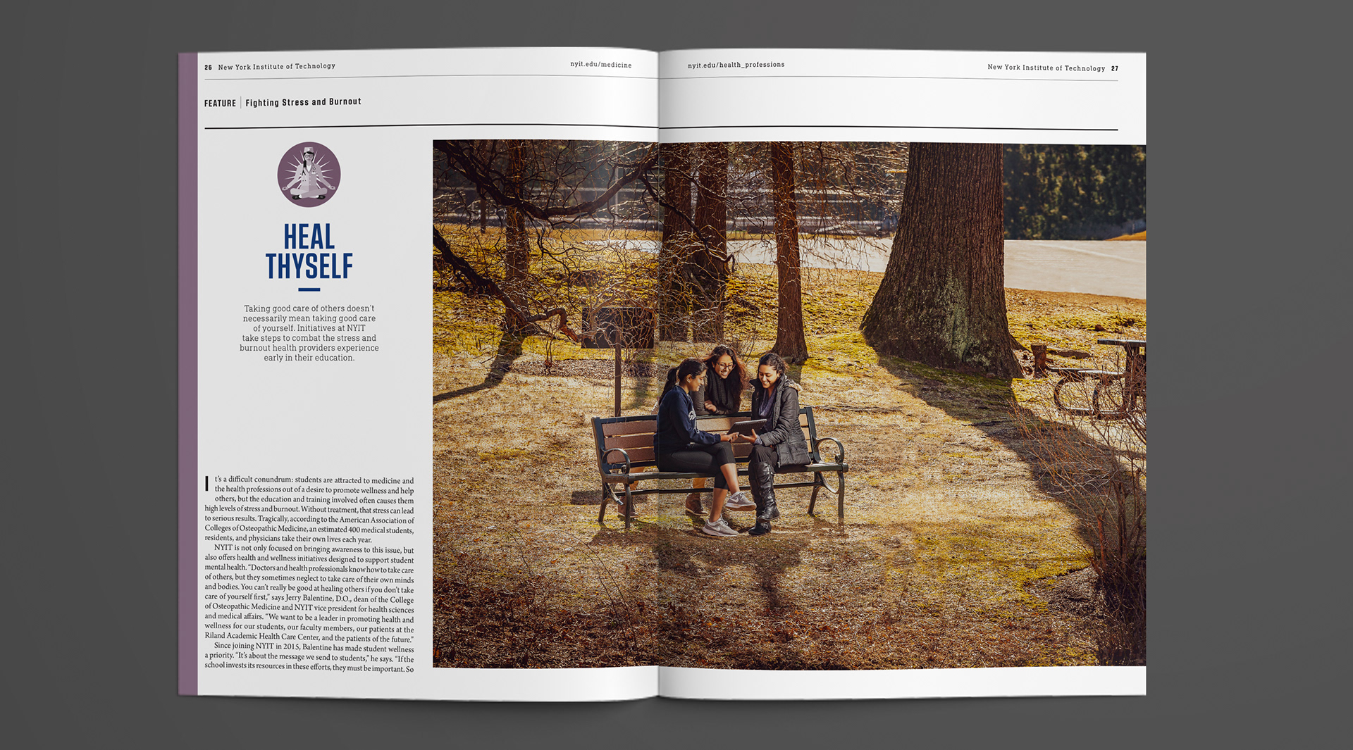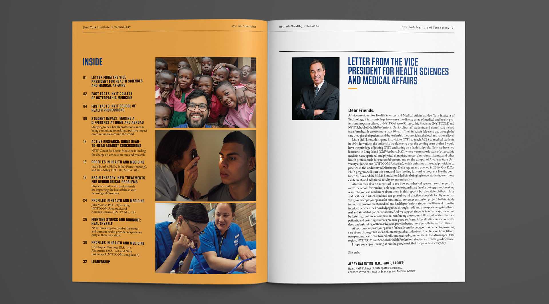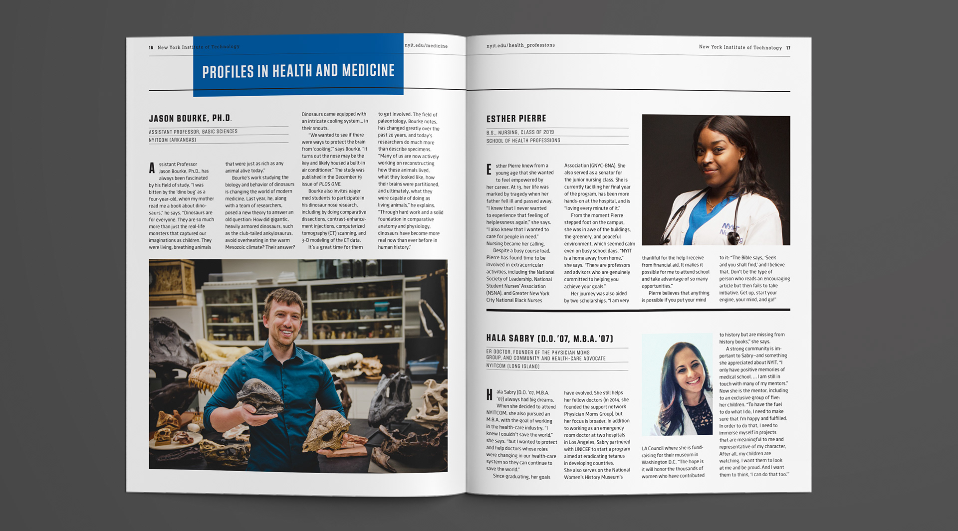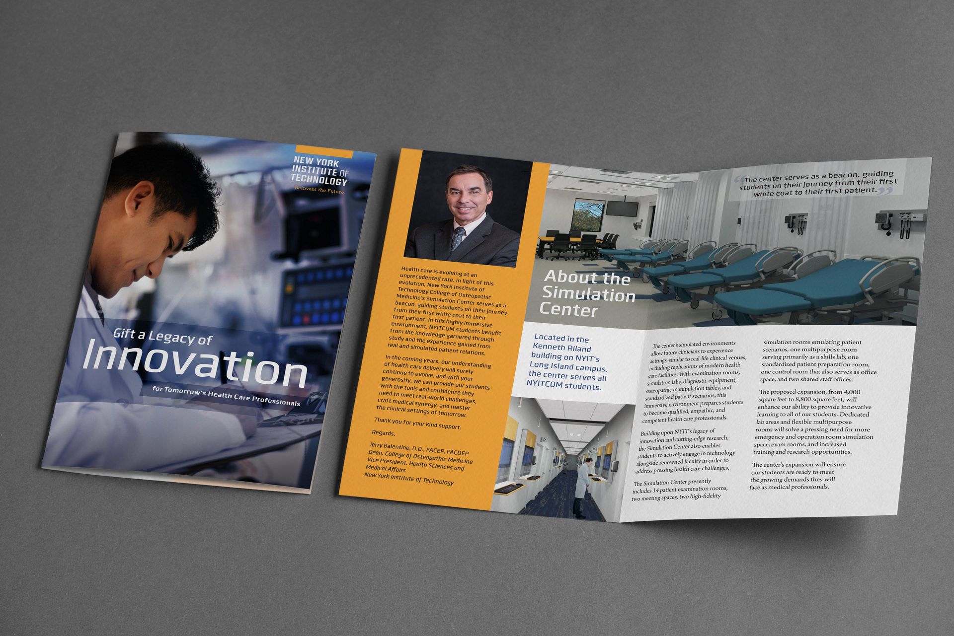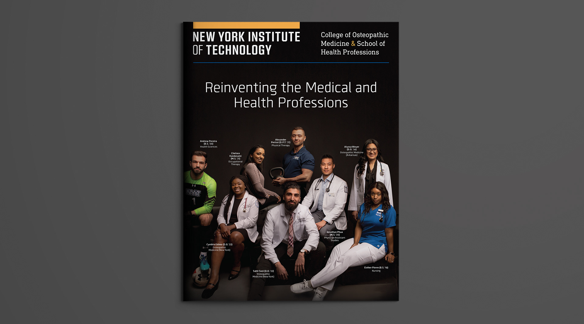 I was responsible for the graphic design and production of the annual report for the NYIT College of Osteopathic Medicine, ensuring alignment with the newly developed branding, logo, and complete style redesign, which encompassed logo typography, photography, and overall visual identity. I also handled pre-press production, the delivery of print files, and supervision throughout the printing process, ensuring color accuracy, quality control, and proper execution on press, including press-side checks and approval. The final product resulted in a cohesive report that effectively showcases the school’s achievements and vision. Additional work, including other design and branding projects, is featured below alongside the annual report.